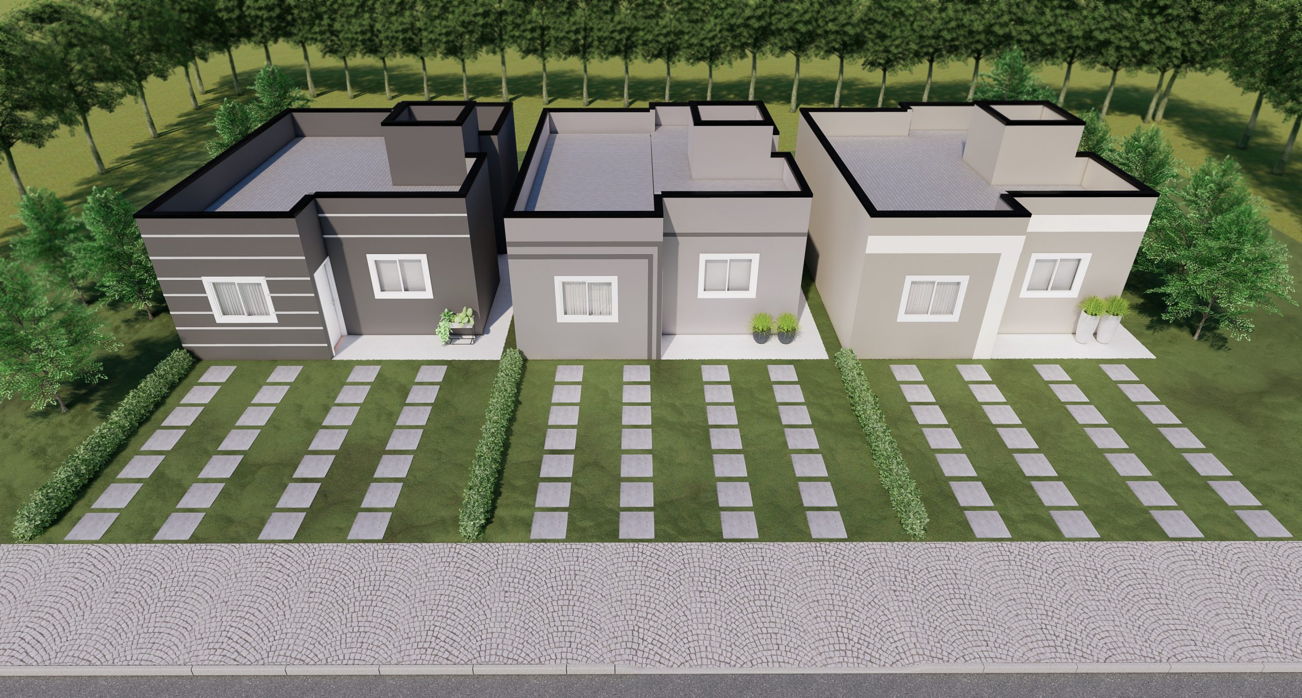 O Jardim Aurora é um empreendimento de casas em Estiva Gerbi com 2 quartos, garagem para 2 carros e espaço para construção gourmet.